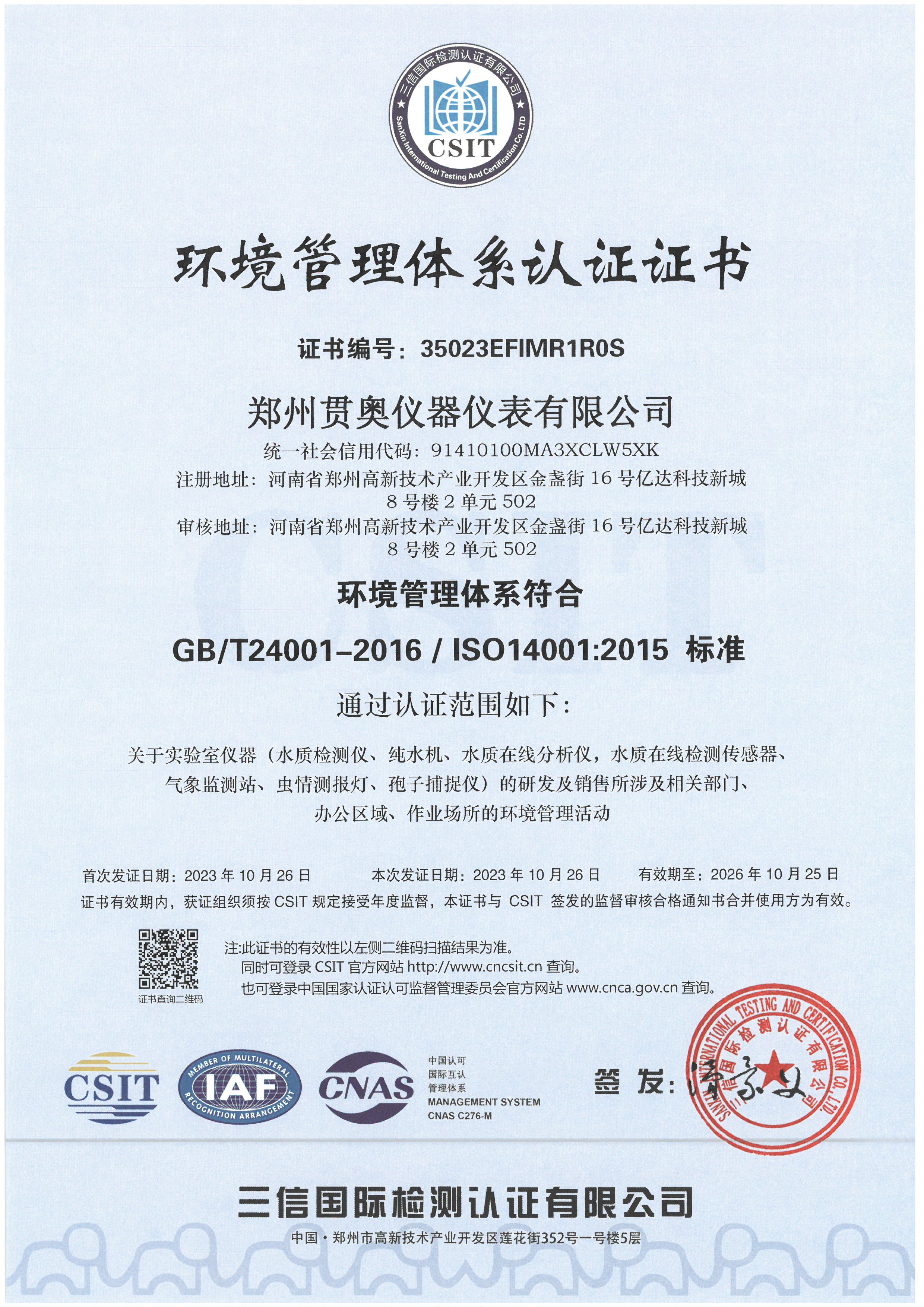 貫奧儀器位于鄭州高新技術(shù)產(chǎn)業(yè)開發(fā)區(qū),是高新技術(shù)企業(yè)、行業(yè)AAA級(jí)信用企業(yè),已通過(guò)GB/T19001:2016質(zhì)量管理體系認(rèn)證、GB/T24001:2016環(huán)境管理體系認(rèn)證和GB/T45001:2020職業(yè)健康安全管理體系認(rèn)證,擁有多項(xiàng)證書,產(chǎn)品已通過(guò)河南省電子信息產(chǎn)品質(zhì)量監(jiān)督檢驗(yàn)院檢測(cè),并出具了相關(guān)檢驗(yàn)報(bào)告,我們以雄厚的研發(fā)實(shí)力、過(guò)硬的產(chǎn)品質(zhì)量、完善的售后服務(wù)為客戶提供分析檢測(cè)技術(shù)解決方案,擁有過(guò)硬的分析儀器生產(chǎn)技術(shù)和整體的水質(zhì)監(jiān)測(cè)解決方案。
