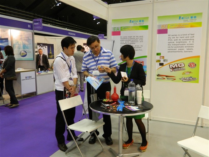 2011年10月,我們參加了FESPA于新加坡舉辦的國際絲網(wǎng)印刷展會(huì),展會(huì)上精美的印件,特別是新產(chǎn)品水性噴漆及熱轉(zhuǎn)印油墨吸引了很多買家前來咨詢產(chǎn)品和技術(shù)信息,為美嘉進(jìn)一步走向世界奠定了良好的基礎(chǔ)。