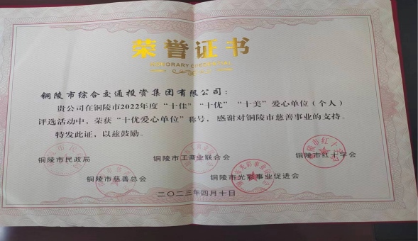 近日,2022年度市“十佳”“十優(yōu)”“十美”愛心單位評選出爐,集團(tuán)公司被授予“十優(yōu)愛心單位”榮譽稱號。
