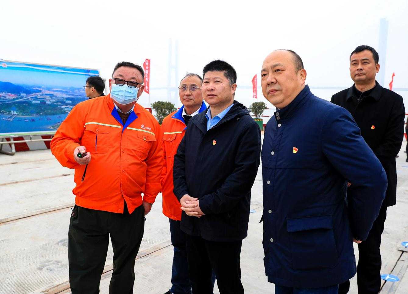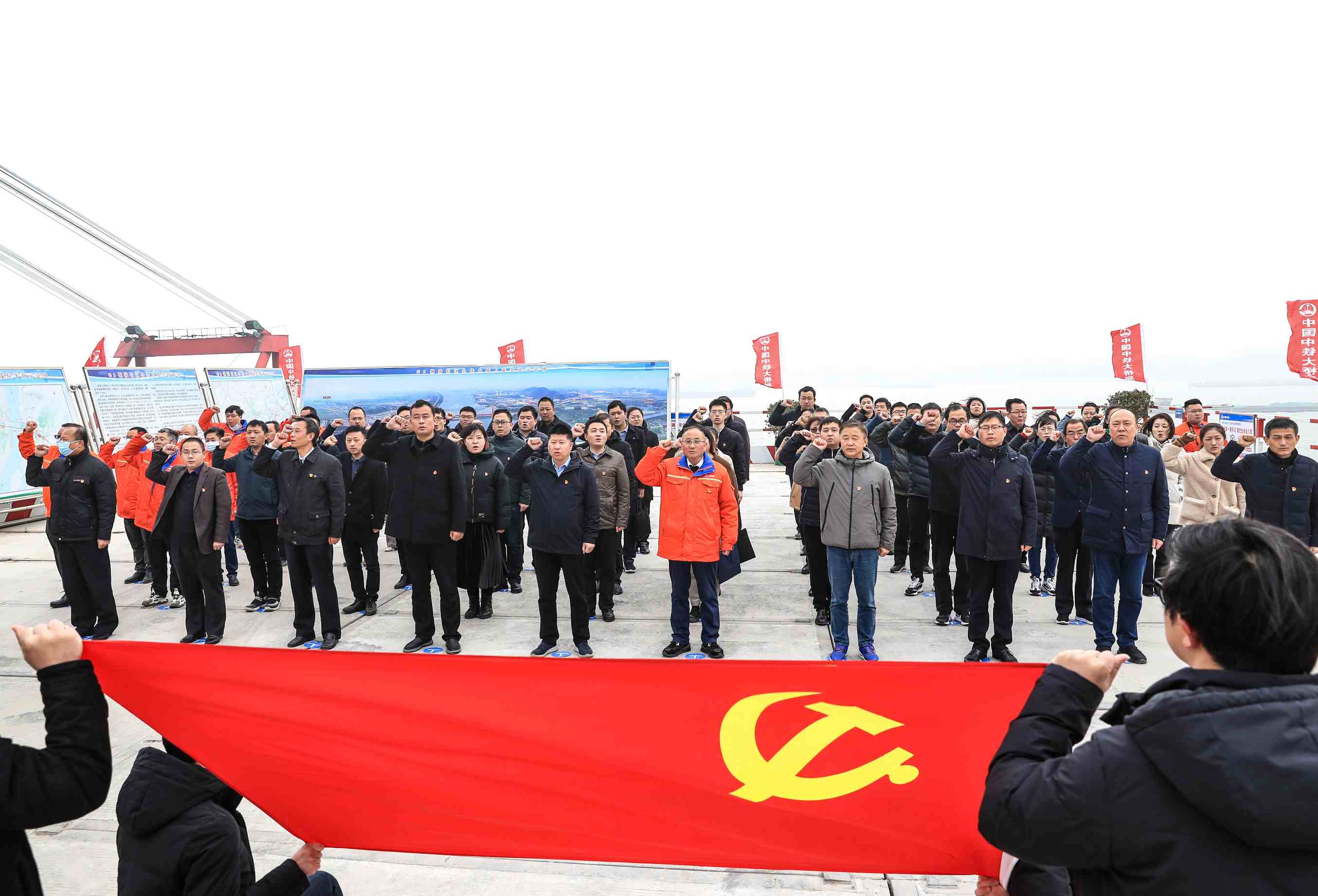 G3銅陵長江公鐵大橋是我市貫徹落實習(xí)近平總書記考察安徽重要講話精神、著力推動長江經(jīng)濟(jì)帶發(fā)展戰(zhàn)略的重要舉措。胡啟書一行深入施工現(xiàn)場,實地查看施工進(jìn)度,并聽取項目總體情況介紹。在G3銅陵長江公鐵大橋南岸棧橋碼頭,全體黨員在領(lǐng)誓人的帶領(lǐng)下,面對鮮紅的黨旗,重溫入黨誓詞。隨后,胡啟書、季躍華共同為部分黨員代表送上了“政治生日”禮物。
