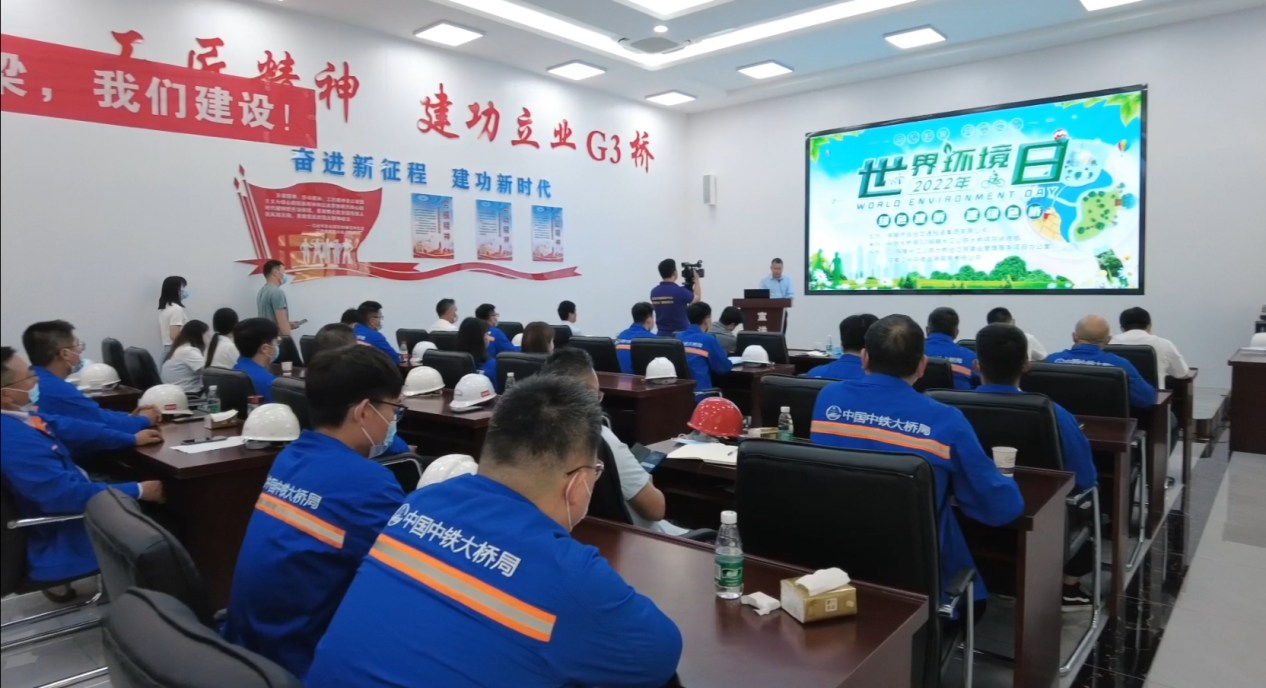 為切實加強生態(tài)環(huán)保建設,提高施工人員環(huán)保意識,6月2日上午,銅陵長江公鐵大橋投資有限公司總經理湯世才在G3產業(yè)工人大講堂宣布舉辦世界環(huán)境日宣傳活動,全過程建設管理服務項目辦公室、公鐵合建段監(jiān)理項目部、公路引橋及接線段監(jiān)理項目部、環(huán)境保護及水土保持技術咨詢項目部、中鐵大橋局G3橋項目經理部及公司職員百余人參加了活動。