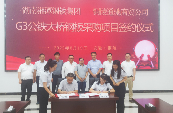 8月19日上午,集團公司黨委副書記、總經(jīng)理周文勝在G3銅陵長江公鐵大橋項目部會見湘鋼集團黨委書記、執(zhí)行董事、總經(jīng)理楊建華一行。雙方就鋼板材料、物流服務(wù)等方面開展深入交流,并共同見證湘鋼集團與市交投集團司屬通馳商貿(mào)公司簽訂G3銅陵長江公鐵大橋鋼板采購項目合作協(xié)議。中鐵大橋局G3銅陵長江公鐵大橋項目部經(jīng)理劉幸福及集團公司黨委委員、副總經(jīng)理范美霞、湯世才,總工程師張葉來出席簽約活動。
