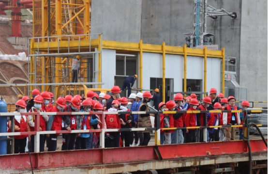上午9時(shí)許,一輛承載著小記者們歡聲笑語的大巴車緩緩駛?cè)隚3銅陵長(zhǎng)江公鐵大橋建設(shè)基地,小記者們有序下車后,按照規(guī)范佩戴好安全帽,便在工作人員的帶領(lǐng)下參觀G3公鐵橋南岸建設(shè)現(xiàn)場(chǎng),面對(duì)著聳立江面的G3銅陵長(zhǎng)江公鐵大橋4號(hào)墩,小記者們驚嘆于現(xiàn)代科技的鬼斧神工,并化作自己的語言記錄在筆記本上。