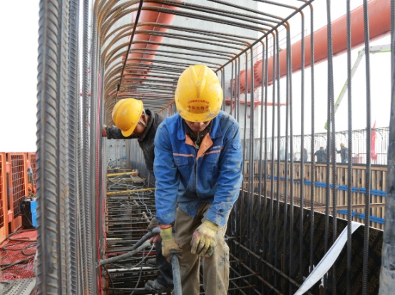 如果把大橋的鋼梁比作扁擔(dān),那么兩座主塔的下橫梁便是抬起扁擔(dān)的兩個(gè)“肩膀”。“我們現(xiàn)在的工作就是給大橋建一個(gè)結(jié)實(shí)的‘肩膀’,保證它在日后能‘扛得住’橋面上川流不息的車流?!敝需F大橋局G3銅陵橋項(xiàng)目部一分部副總工程師鄒端介紹。