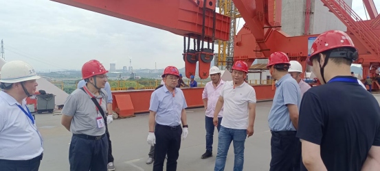 龍道寧一行先后前往G3公鐵橋項目起點、北岸智慧梁場、4號主墩、南北錨碇施工現(xiàn)場及項目終點,實地查看了施工進(jìn)度情況,詳細(xì)了解了項目概況及施工推進(jìn)過程中的重難點,并現(xiàn)場給與指導(dǎo)意見。