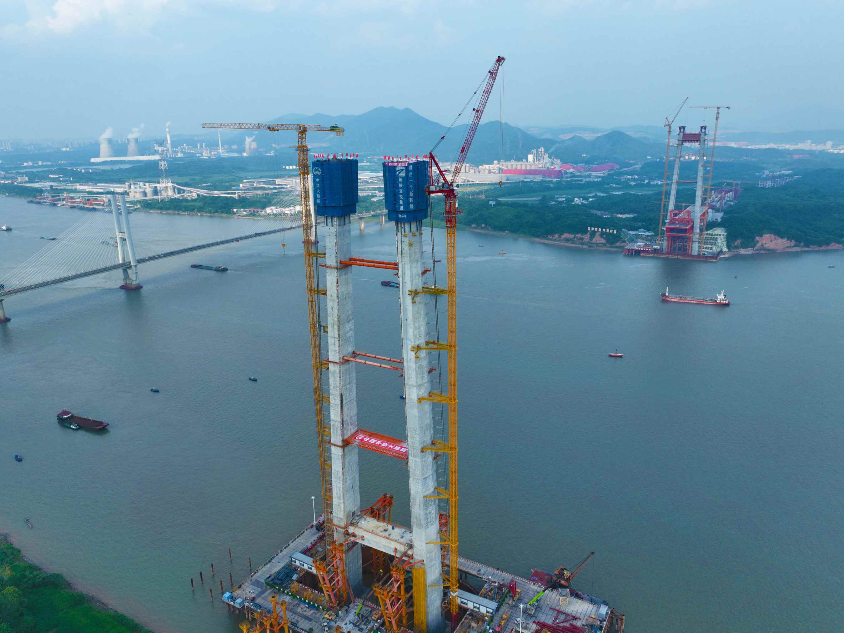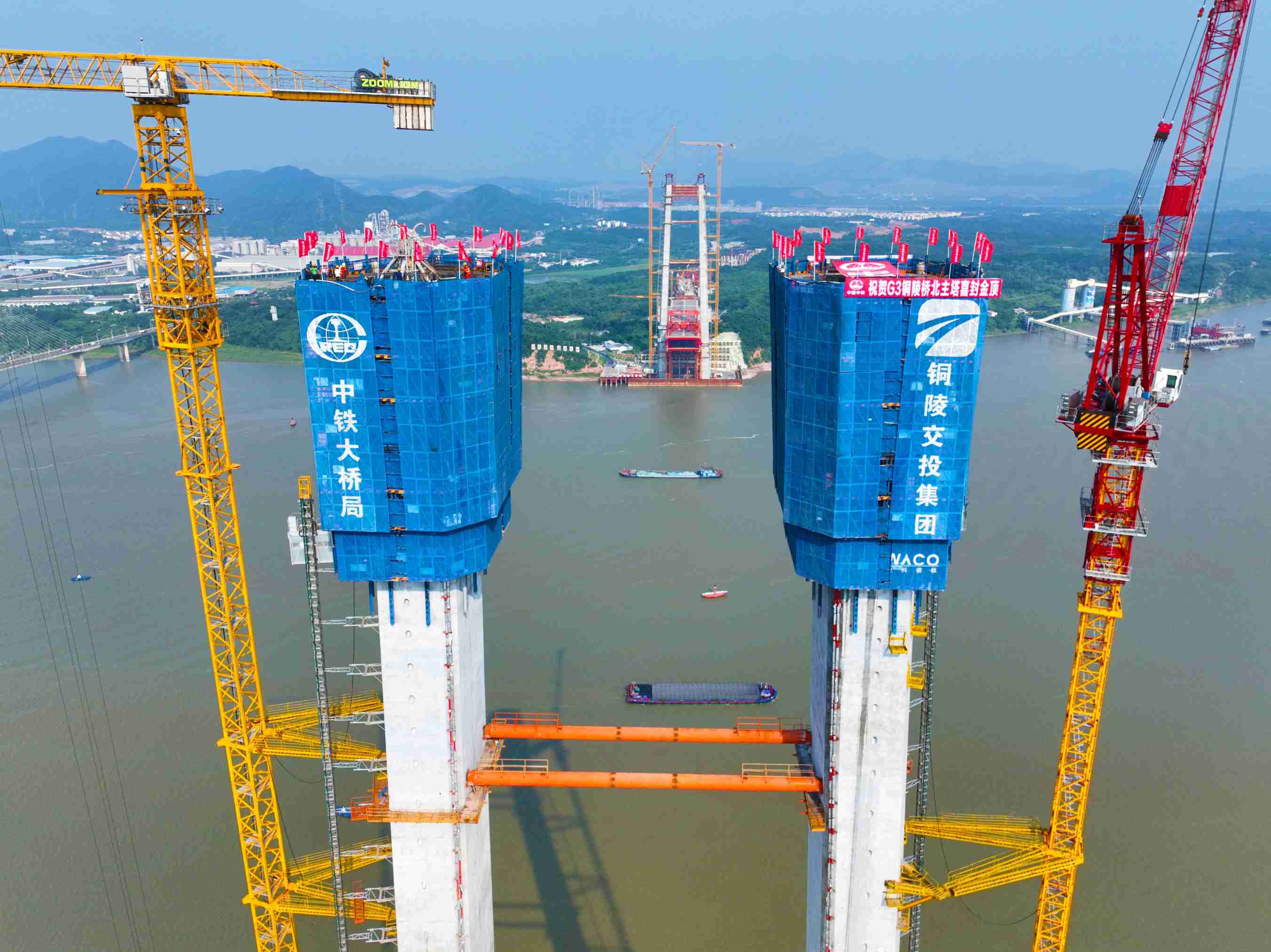 8月18日,由銅陵市交投集團(tuán)投資建設(shè)、中鐵大橋院設(shè)計、中鐵大橋局承建的世界首座雙層斜拉-懸索協(xié)作體系大橋——G3銅陵長江公鐵大橋北岸3號主塔順利封頂,至此,大橋南北兩座主塔全部封頂,施工取得重大進(jìn)展,大橋?qū)⑷孢M(jìn)入鋼梁架設(shè)階段。