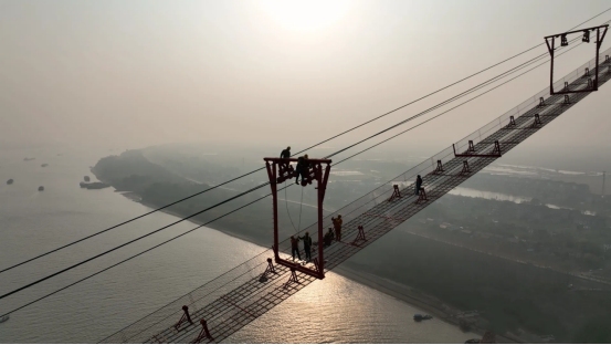 自10月20日先導索過江,到11月30日最后一個門架安裝完成,大橋貓道在45天內(nèi)安全完工,為大橋纜索系統(tǒng)的施工創(chuàng)造了良好條件。未來,一股股纜索將在其上完成“穿針引線”,為大橋主梁過江提供關(guān)鍵支撐。