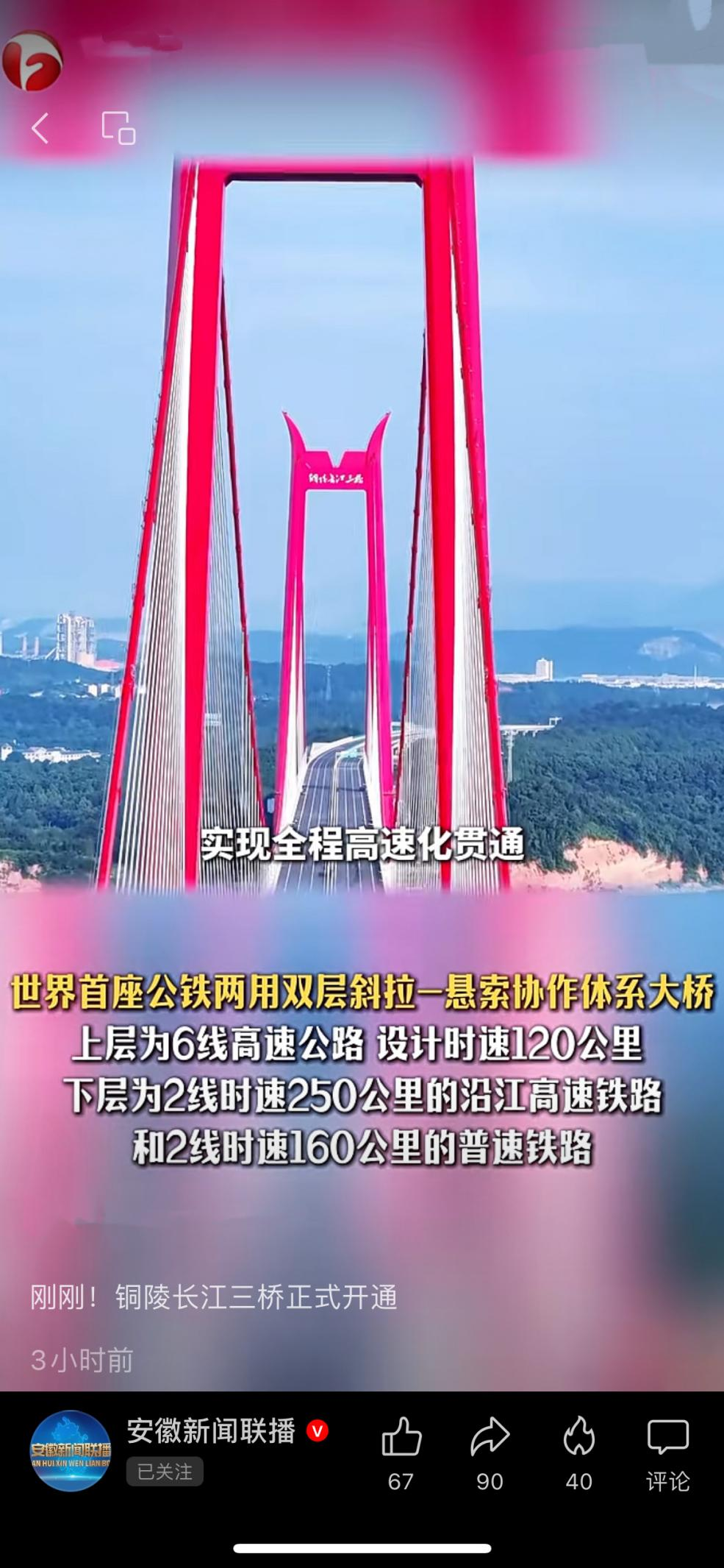 9.銅陵臺發(fā)布《剛剛通車!銅陵長江三橋開啟跨江新紀元》
