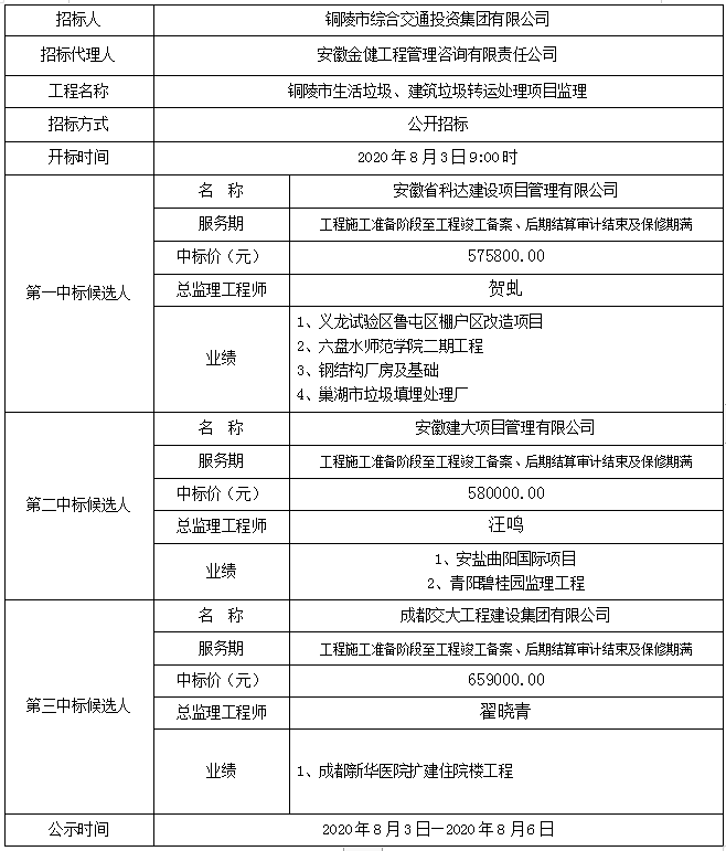 注:如有投訴或情況反映,請于公示期間與銅陵市綜合交通投資集團(tuán)有限公司聯(lián)系。