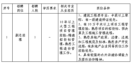 銅陵市綜合交通投資集團有限公司司屬全資子公司銅陵交投置業(yè)有限公司因經(jīng)營發(fā)展需要,現(xiàn)面向社會公開招聘若干名工作人員,現(xiàn)將具體事項公告如下: