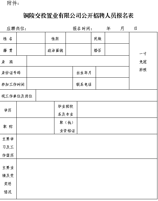 ?附件:銅陵交投置業(yè)有限公司公開招聘人員報名表
