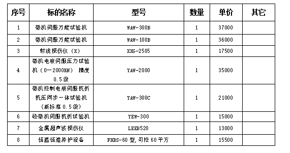 二、項(xiàng)目名稱:銅陵市華信工程質(zhì)量檢驗(yàn)有限責(zé)任公司實(shí)驗(yàn)室儀器設(shè)備采購(gòu)項(xiàng)目(二標(biāo)段)(二次)