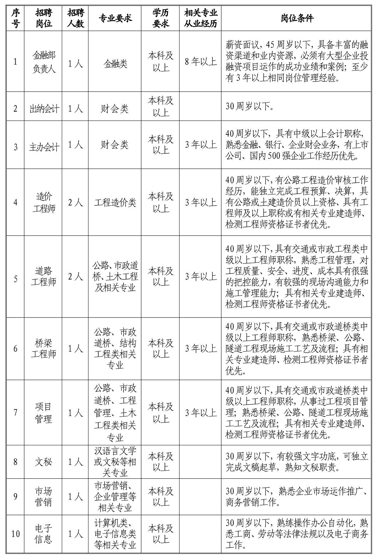 銅陵市交通投資有限責(zé)任公司因經(jīng)營(yíng)發(fā)展需要,現(xiàn)面向社會(huì)公開(kāi)招聘12名工作人員,現(xiàn)將具體事項(xiàng)公告如下:
