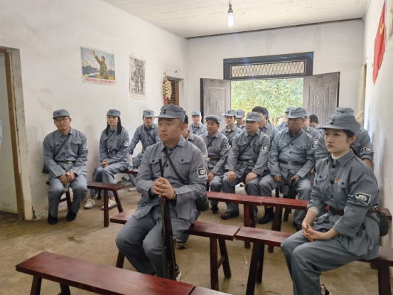 活動(dòng)中,大家首先觀看了《渡江偵察記》節(jié)選片段,重溫了那段革命戰(zhàn)爭(zhēng)場(chǎng)景,回顧了劉四姐為革命事業(yè)甘于奉獻(xiàn)的愛國(guó)精神。隨后,大家換上新四軍軍服,就地開啟新四軍紅色文化體驗(yàn)之旅,重溫紅色記憶。爾后大家齊唱一首革命歌曲《沒有共產(chǎn)黨就沒有新中國(guó)》;重走一段新四軍的小路,山路高低不平,少數(shù)黨員同志能夠克服困難,堅(jiān)持走了5公里;聽一段新四軍故事,講解員講述劉四姐傳奇而短暫的感人故事;吃一頓新四軍飯,憶苦思甜,吃著紅薯,感受當(dāng)年新四軍為新中國(guó)解放事業(yè)作出的巨大貢獻(xiàn)。