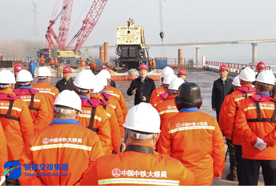 12月29日上午,市委副書記、市長(zhǎng)孔濤調(diào)研G3銅陵長(zhǎng)江公鐵大橋項(xiàng)目建設(shè)工作并看望慰問一線職工。市領(lǐng)導(dǎo)張夢(mèng)生、金春龍、何田、何剛明、黃學(xué)龍,市政府秘書長(zhǎng)古勁松等參加,集團(tuán)公司黨委書記、董事長(zhǎng)何成龍參加調(diào)研。