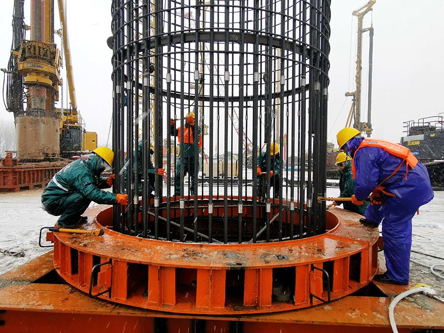 人民網(wǎng)合肥2月9日電(陳浩)虎年上班首日,安徽銅陵出現(xiàn)降雪天氣,但建設(shè)者的熱情沒有絲毫減弱。為確保G3銅陵長(zhǎng)江公鐵大橋建設(shè)進(jìn)度,施工人員頂風(fēng)冒雪為大橋3號(hào)主墩安裝鉆孔樁鋼筋籠。