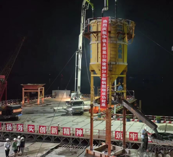 8月10日凌晨5時(shí),經(jīng)過(guò)數(shù)個(gè)日夜的連續(xù)澆筑,G3銅陵長(zhǎng)江公鐵大橋3號(hào)主墩鋼圍堰水下封底順利完成,標(biāo)志著大橋北岸主墩即將進(jìn)入承臺(tái)施工階段,為后續(xù)塔柱及上部結(jié)構(gòu)施工奠定了堅(jiān)實(shí)的基礎(chǔ)。