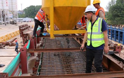 為確保本次首梁澆筑順利開(kāi)展,中鐵十六局項(xiàng)目團(tuán)隊(duì)精心組織,統(tǒng)籌安排,從施工組織、材料設(shè)備、人員配置、鋼筋加工與模板安裝、混凝土原材料等各環(huán)節(jié)嚴(yán)格按照標(biāo)準(zhǔn)化施工要求進(jìn)行。 同時(shí),積極開(kāi)展對(duì)施工隊(duì)伍的技術(shù)、安全交底,嚴(yán)格現(xiàn)場(chǎng)技術(shù)監(jiān)控和安全質(zhì)量管理,保障了首梁澆筑過(guò)程的連續(xù)、規(guī)范。