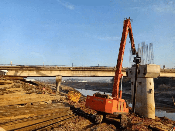 1月19日,G236青通河大橋左幅6號墩完成鋼板樁拔出,接下來將進行6號墩上部托架施工。
